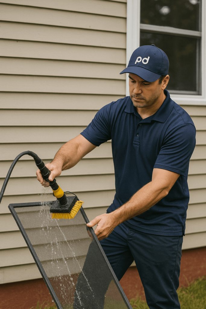 PD Window Cleaning provides professional window screen cleaning in Tallahassee, FL — removing dirt, dust, and pollen to improve airflow, visibility, and curb appeal.